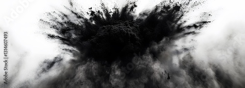 The watermark will not be included on Canvas Print.: A dynamic explosion of black carbon powder against a high-contrast background on an isolate backgrou