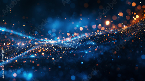 Canvas Prints a dynamic wave of blue and orange particles, digital bokeh style, on a dark background, concept of f