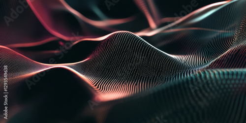 The watermark will not be included on Canvas Print.: A futuristic abstract background with sleek, iridescent light trails curving through an infinite dig