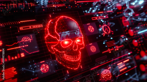 Canvas Prints a futuristic digital skull design illuminated in red, representing technology and cyber themes, idea