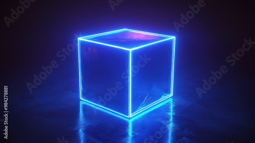 Canvas Prints a glowing blue cube with a neon outline on a reflective surface. - Canvas Prints Canvas Prints a glowing blue cube with a neon outline on a reflective surface. - Canvas Prints