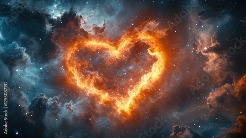 Canvas Print : A glowing heart shape formed by cosmic clouds and stars in a nebula -