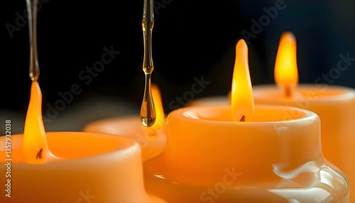 The watermark will not be included on Canvas Print.: A group of lit candles sitting on top of a table