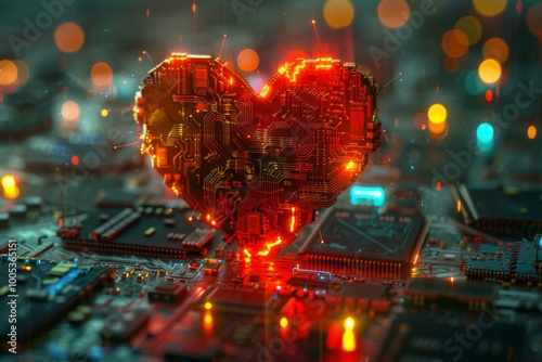Canvas Print : A heart shaped circuit board with glowing lights on it - ai -
