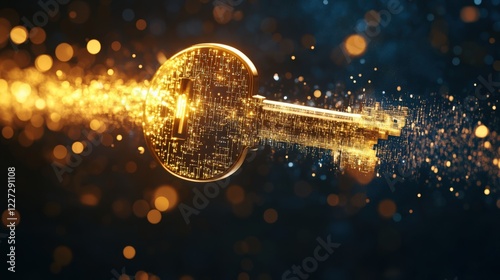 The watermark will not be included on Canvas Print.: A key is shown in a blurry, glowing light with a lot of sparkles