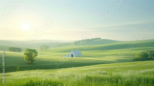 The watermark will not be included on Canvas Print.: A large, empty field with a white house in the middle