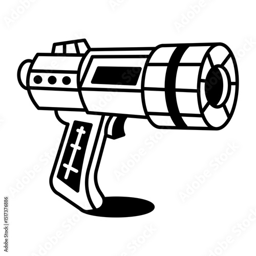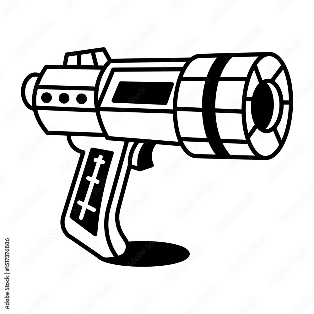 The watermark will not be included on Canvas Print.: A linear style icon of futuristic gun