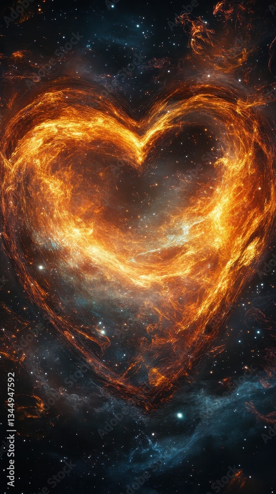 The watermark will not be included on Canvas Print.: A luminous nebula shaped like a glowing heart in space