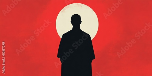 Canvas Print : A man stands in front of a red background with a black silhouette
