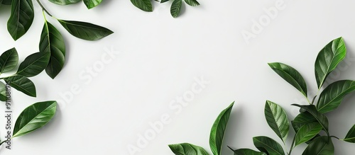 Canvas Prints a minimal style copy space image featuring fresh green leaves on a white paper surface
