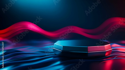 Canvas Prints a modern digital illustration featuring an abstract object illuminated by vibrant blue and red light