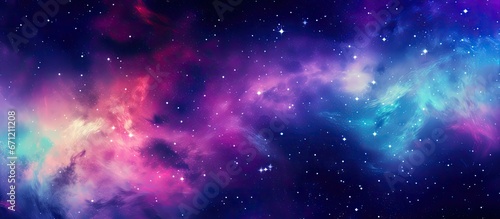 The watermark will not be included on Canvas Print.: A modern fashion template for seamless design with a colorful pattern featuring a galaxy inspired ba