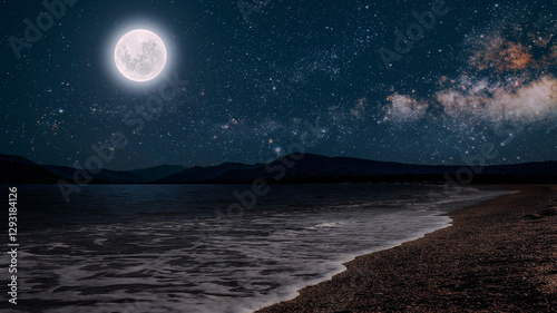 The watermark will not be included on Canvas Print.: A movement of stars in the night sky with the view of mountains - -