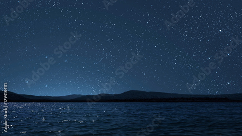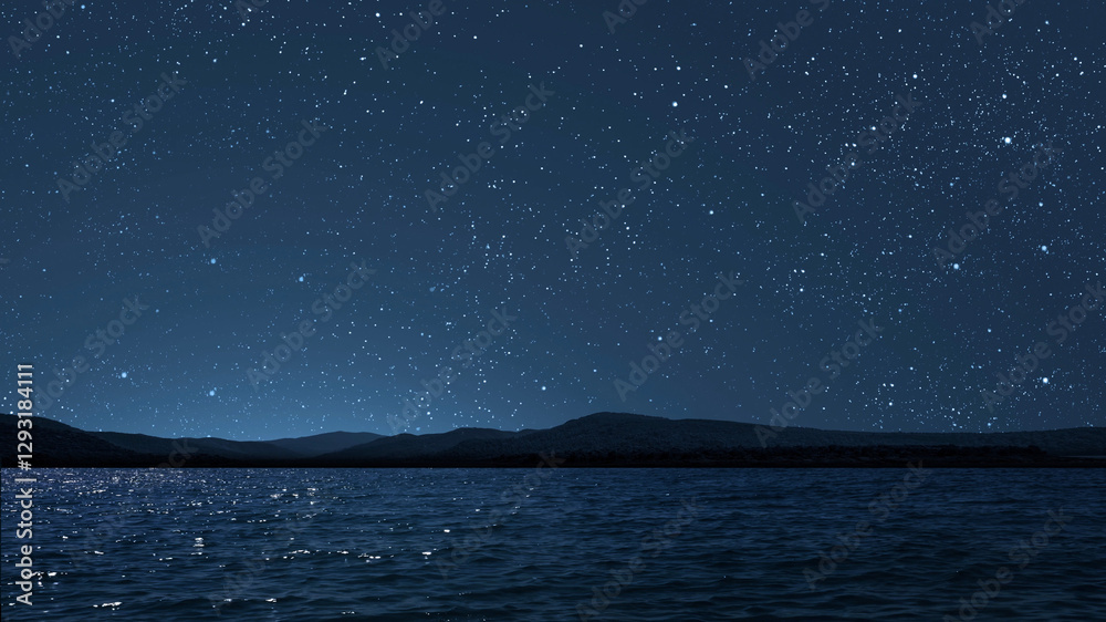 The watermark will not be included on Canvas Print.: A movement of stars in the night sky with the view of mountains - -