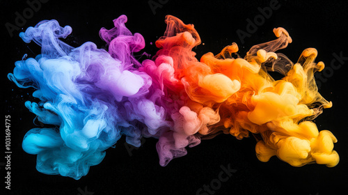 The watermark will not be included on Canvas Print.: A multicolored smoke plume, shimmering with all the colors of the rainbow - a swirling cloud of explo