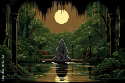The watermark will not be included on Canvas Print.: A mysterious and enigmatic hermit, dwelling in solitude and possessing ancient wisdom - - generative