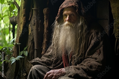 The watermark will not be included on Canvas Print.: A mysterious and enigmatic hermit, dwelling in solitude and possessing ancient wisdom - - generative
