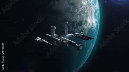 Canvas Print : A new space station in space orbiting the earth - a concept on the theme of space exploration and tec