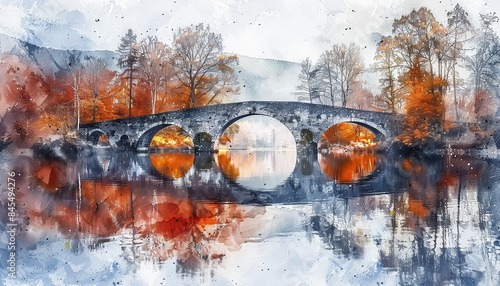 The watermark will not be included on Canvas Print.: A painting of a bridge over a river with a bridge in the middle