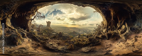 Canvas Prints a panoramic view of a hidden alien civilization nestled within a crater. - Canvas Prints Canvas Prints a panoramic view of a hidden alien civilization nestled within a crater. - Canvas Prints
