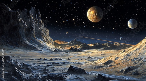 Canvas Print : A panoramic view of the vastness of space with planet galaxy
