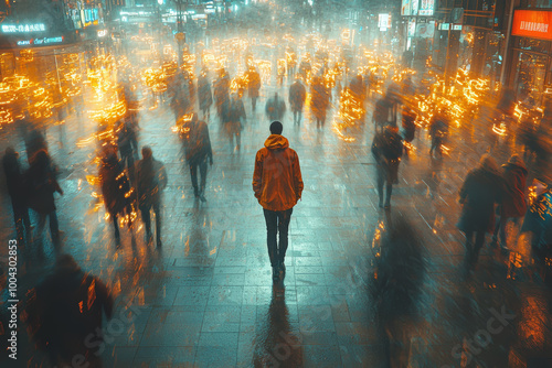 The watermark will not be included on Canvas Print.: A person walking through a crowded street, feeling invisible and disconnected from the world around