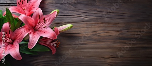 Canvas Prints a photo of a pink lily set against a rustic background, providing room for additional images or text - Canvas Prints Canvas Prints a photo of a pink lily set against a rustic background, providing room for additional images or text - Canvas Prints