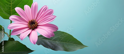 Canvas Print : A pink flower set against a green leaf backdrop creates a harmonious colorful copy space image