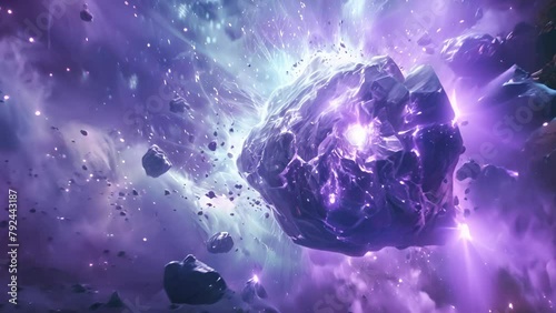 Canvas Prints a purple space with a large rock in the middle. the rock is surrounded by many smaller rocks