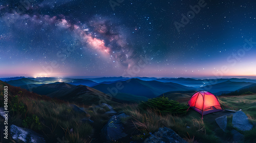 Canvas Prints a red tent is set up in the middle of a mountain range