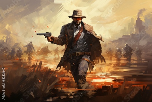 The watermark will not be included on Canvas Print.: A relentless and skilled bounty hunter, tracking down and capturing fugitives with ruthless efficien