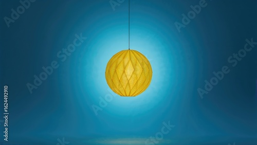 The watermark will not be included on Canvas Print.: A representation of uniqueness with a yellow paper ball on a blue backdrop, symbolizing creativity -