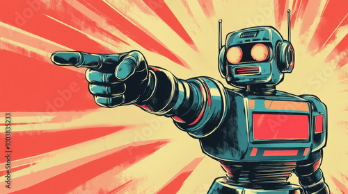 Canvas Prints a retro-style illustration shows a robot pointing with its hand, promoting a sale. it's drawn in a c - Canvas Prints Canvas Prints a retro-style illustration shows a robot pointing with its hand, promoting a sale. it's drawn in a c - Canvas Prints