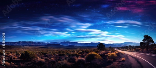 The watermark will not be included on Canvas Print.: A road stretching out towards the milky way galaxy in a mesmerizing copy space image -