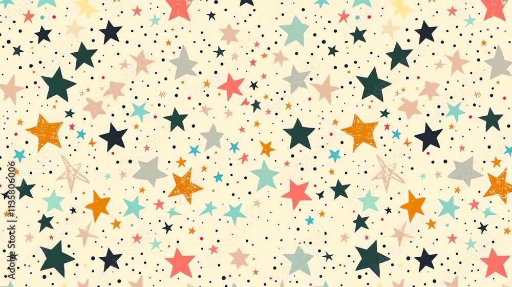 The watermark will not be included on Canvas Print.: A seamless pattern of colorful stars and dots on a light background -