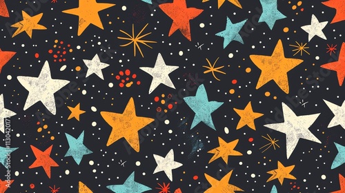 The watermark will not be included on Canvas Print.: A seamless pattern of colorful stars on a dark background -