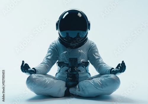 The watermark will not be included on Canvas Print.: A serene astronaut meditating in a minimalist environment -