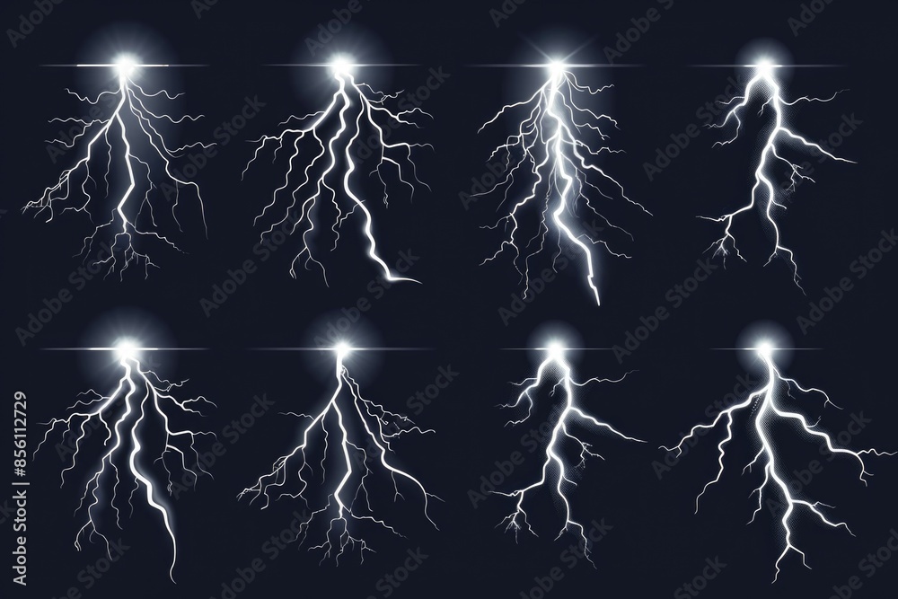 The watermark will not be included on Canvas Print.: A series of lightning strikes on a dark and ominous background