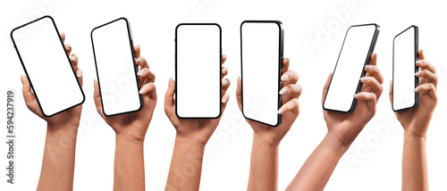 Canvas Prints a set of female hands with a smartphone featuring a frameless screen. 6 available positions that you