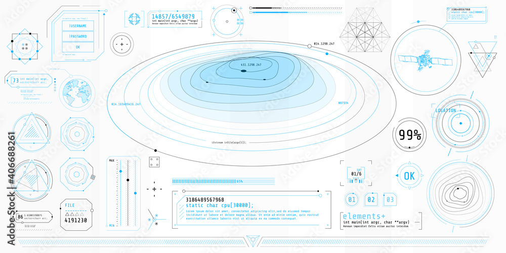 The watermark will not be included on Canvas Print.: A set of thin elements on the topic of topography -