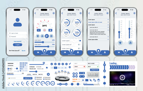 Canvas Prints a set of ui ux elements for smart home management mobile apps: an interface with buttons, panels, gr - Canvas Prints Canvas Prints a set of ui ux elements for smart home management mobile apps: an interface with buttons, panels, gr - Canvas Prints