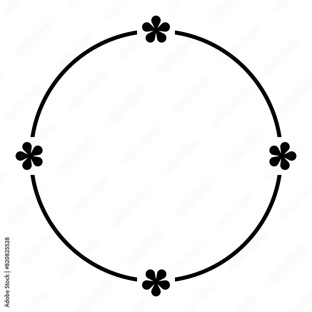 The watermark will not be included on Canvas Print.: A simple black decorative frame with flower ornaments - elegant round frame isolated on transparent