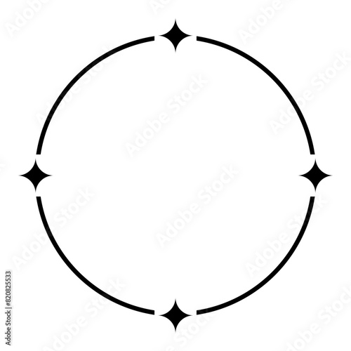 Canvas Prints a simple black decorative frame with sparkle ornaments - elegant round frame isolated on transparent