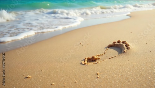 Canvas Prints a single footprint in soft sand near the ocean, symbolizing a minimal environmental impact and perso