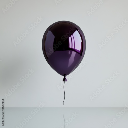 The watermark will not be included on Canvas Print.: A single glossy purple balloon floating mid-air, casting soft reflections on a clean white backgroun