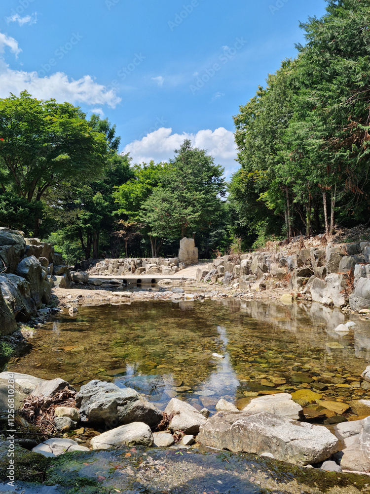The watermark will not be included on Canvas Print.: A sky with clouds and a forest of trees -