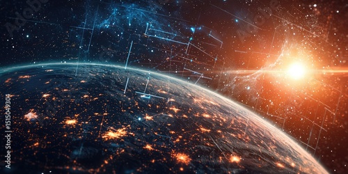 The watermark will not be included on Canvas Print.: A sleek, modern software screen for space missions featuring dynamic celestial data, orbit tracking,