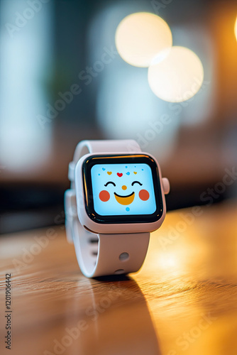 Canvas Print : A smartwatch with a happy face, counting steps and clapping