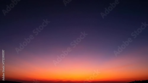 The watermark will not be included on Canvas Print.: A smooth, captivating gradient of colors transitions across the sky from horizon to zenith during tw