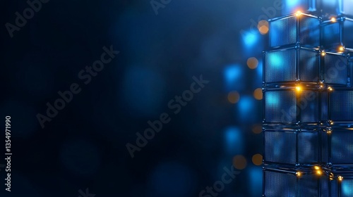 The watermark will not be included on Canvas Print.: A stack of servers on a dark blue background